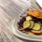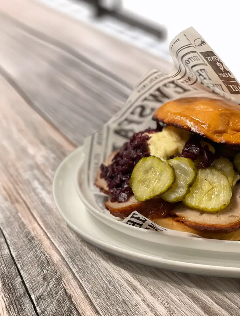 Vores frikadellesandwich er et solidt og lækkert valg. Saftige, hjemmelavede frikadeller, serveret i en frisk bolle med agurkesalat, rødkål og en cremet dressing. En harmonisk kombination af smag og tekstur, der giver en klassisk dansk favorit et moderne twist. Perfekt til en mættende frokost.